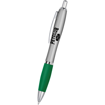 Satin Silver Barrel with Green Rubberized Grip. Petclub 247 Logo printed on one side of barrel.